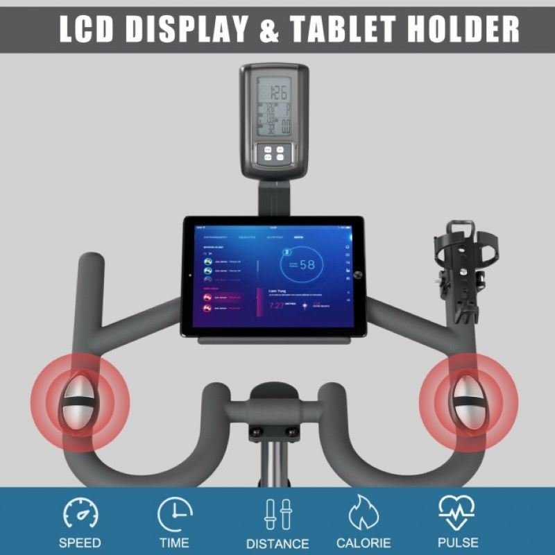LCD Monitor and Tablet Holder: LCD monitor tracks the time, speed, distance, calories burned and pulse while you are cycling, helping to reach the best exercising effect. And the heart rate can be detected and received by both hands on pulse detection. Plus, you can put your phone or books on the tablet holder.