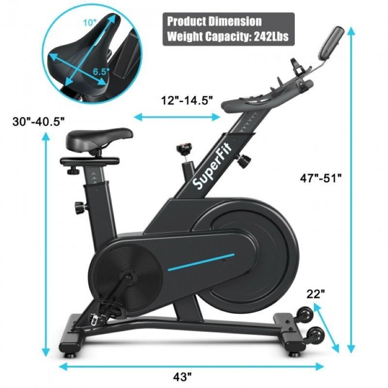1.This indoor workout bike with adjustable seat and handlebar is suitable for people with different body sizes and cycling postures, which is perfect for various users from 4.9ft to 6.2ft. Besides, the professional fitness saddle is designed for longer periods of training.