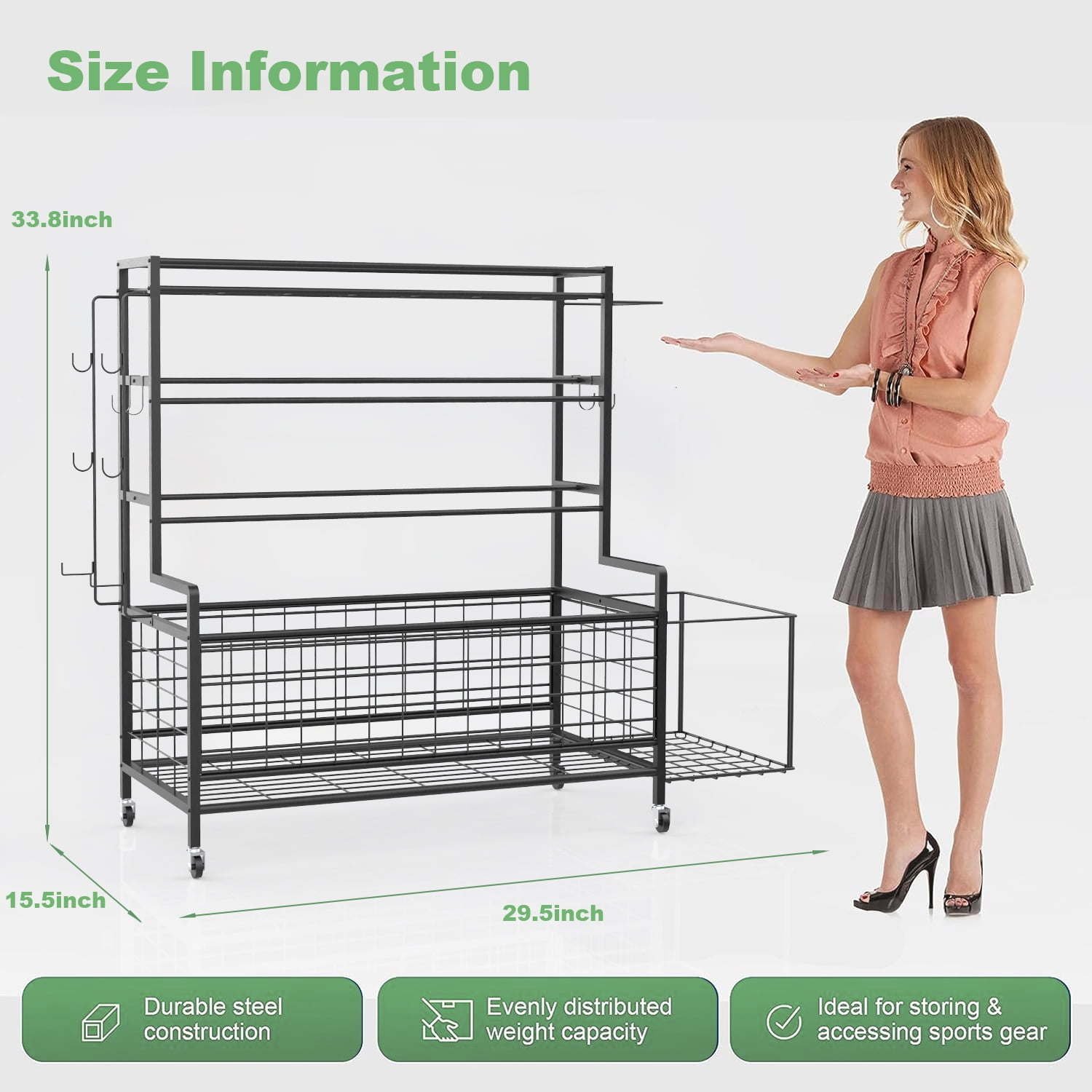 [ Large capacity storage rack ]: The storage rack is equipped with 2 layers of metal mesh, a side basket, a three section iron frame, and several hooks, which can store various yoga equipment and exercise equipment